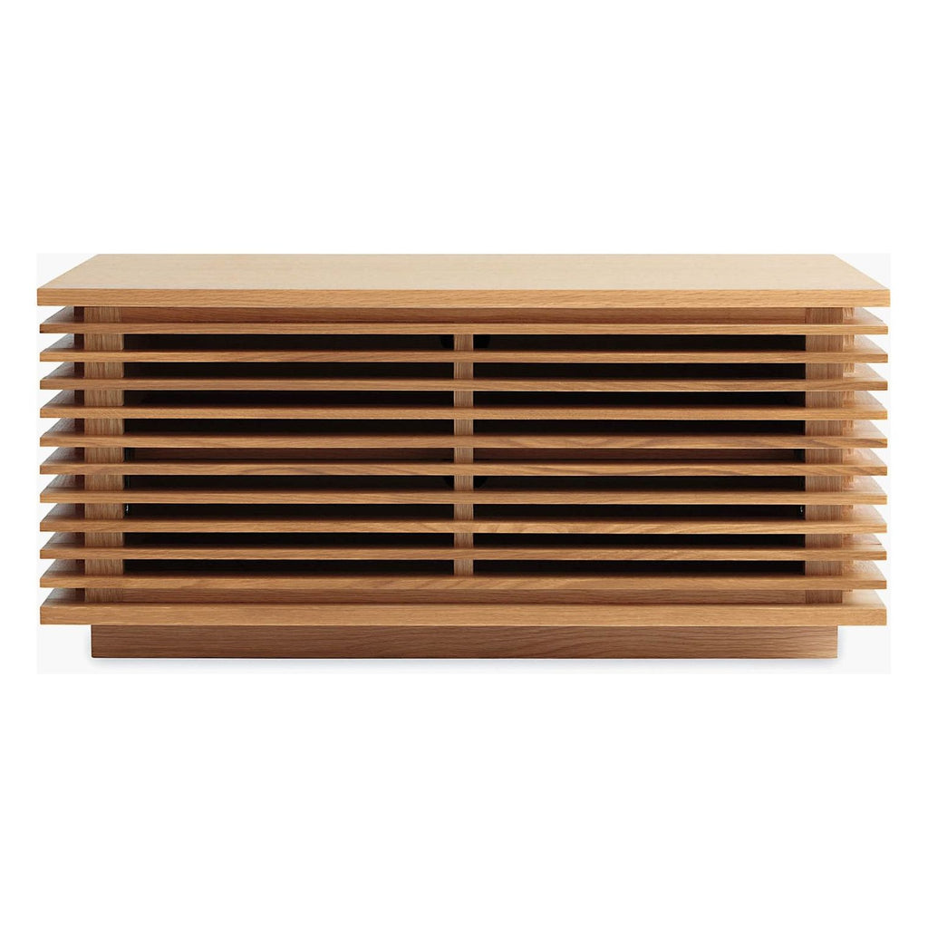 Created by award winning designer Nathan Yong, the line series emulates Yong’s desire to represent nature in our modern world. The horizontal lines lend a sense of restfulness to your interior space. The Credenza’s thin timber battens conceal the structure within and allow sound to permeate from and remote signals to permeate through the unit. Featuring adjustable shelves, cord escapes and a fully finished back it can float within your space.