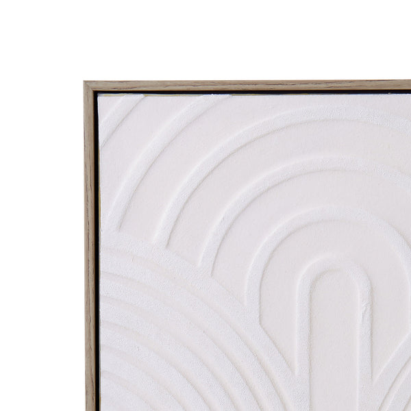 This Linear Wall Art will be the centrepiece of any space! It displays a soft yet impressive linear embossed pattern. The modern and white colour palette complements both classic and contemporary interiors alike. Enclosed in a plastic frame, it will enrich any corner of the home.