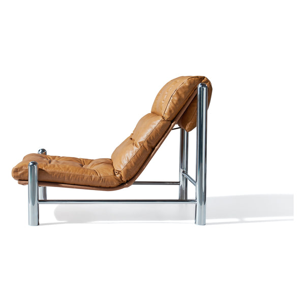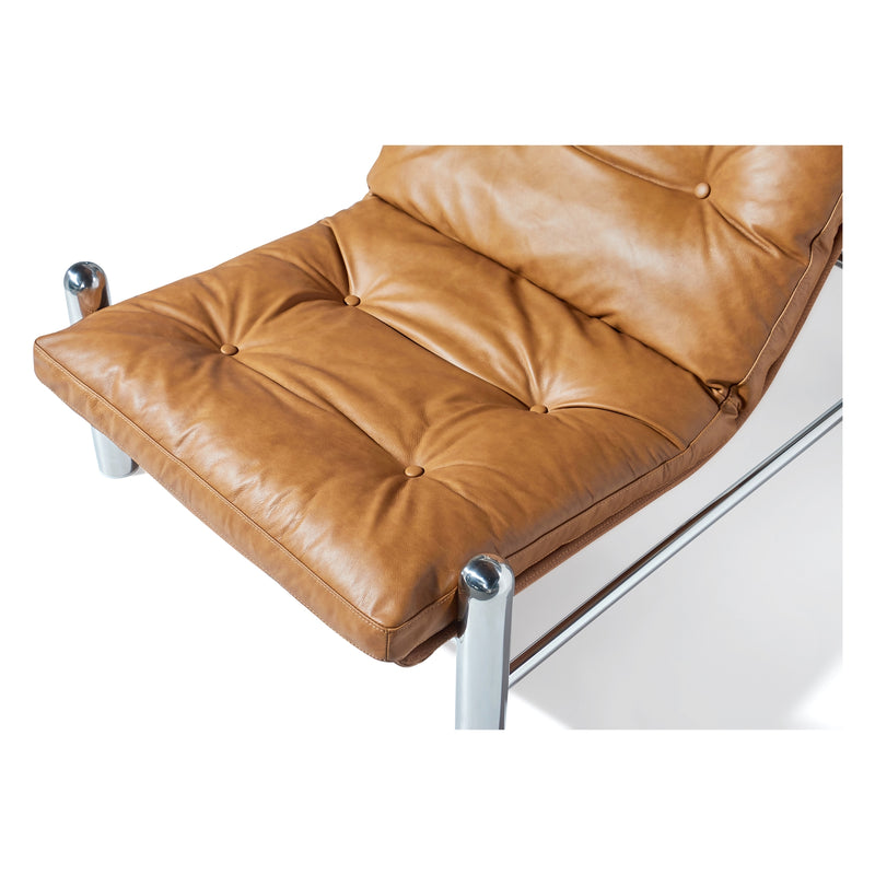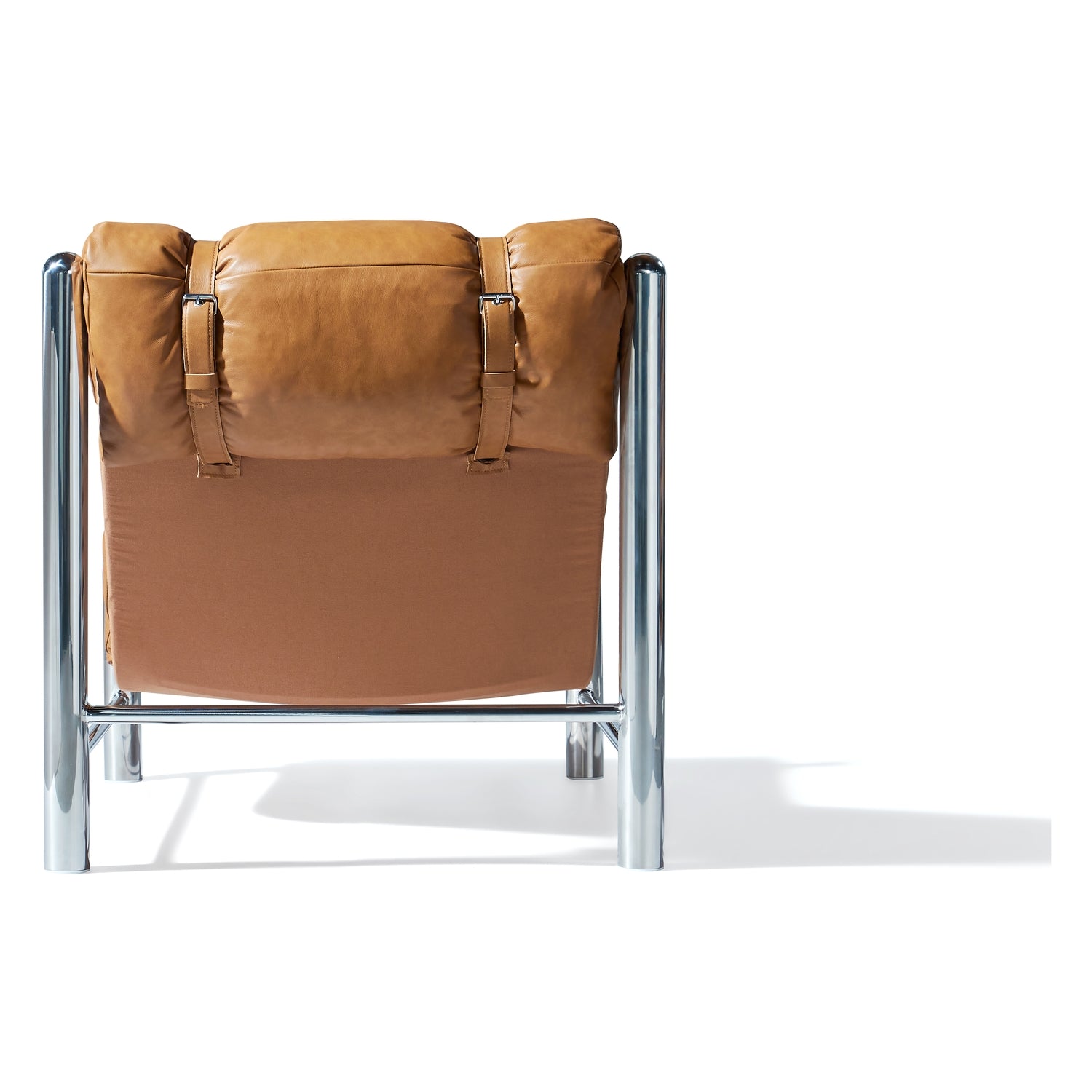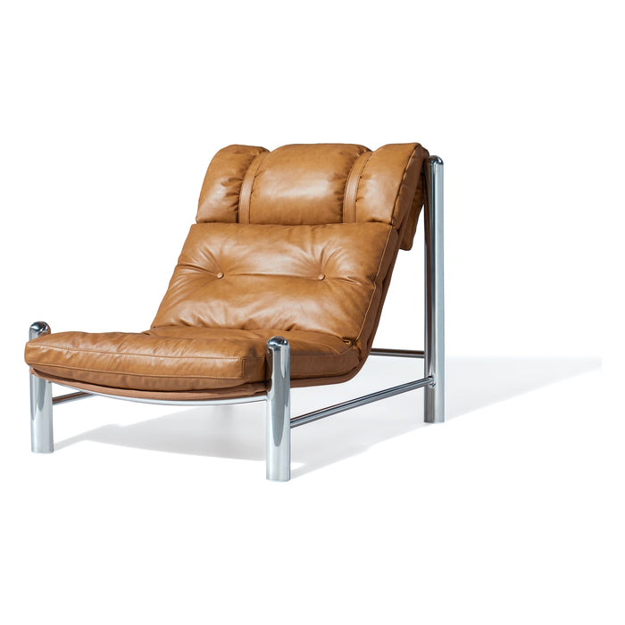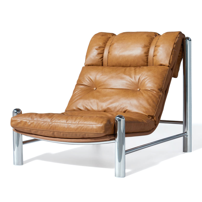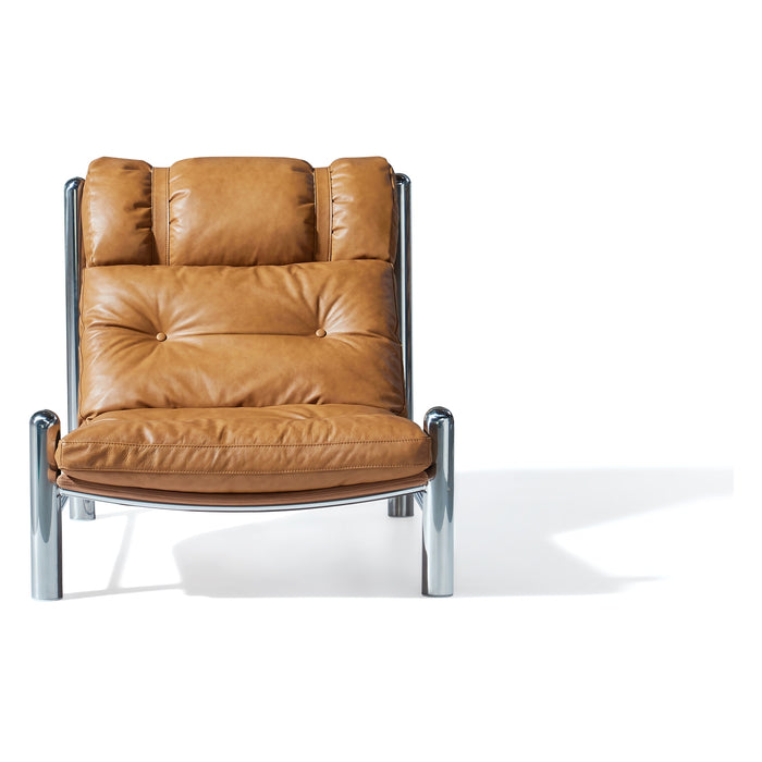 The Lunair Lounge Chair is a contemporary seating piece that emphasizes a balance between industrial materials and ergonomic comfort. Its low-slung, reclined profile makes it a functional addition to modern residential or professional lounge areas.