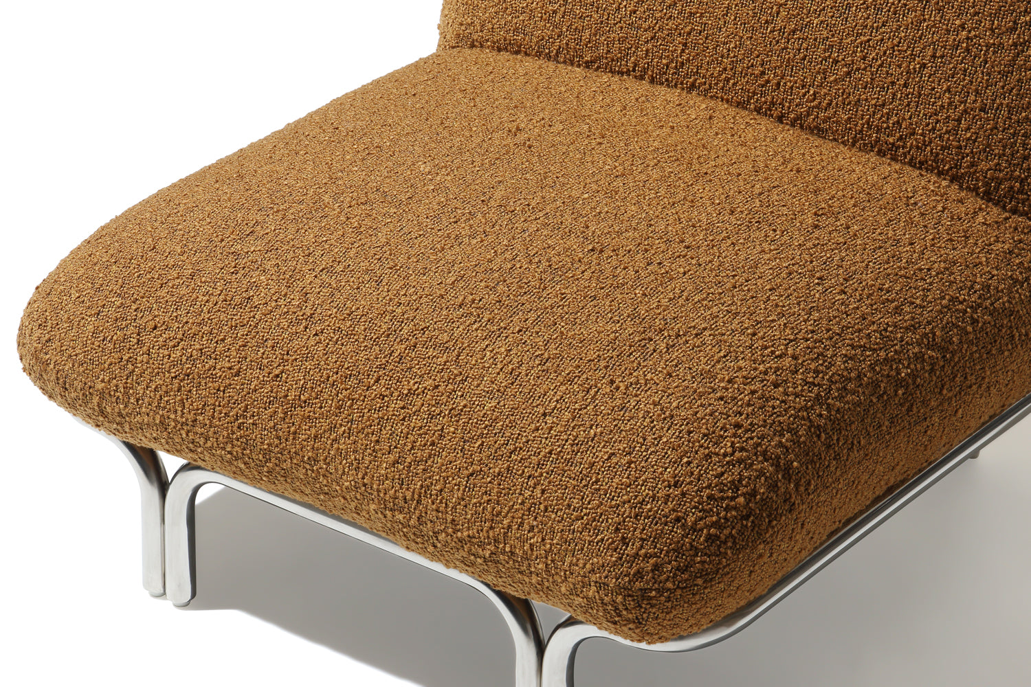 Clean lined sofa with oversized seat and back cushion and finished with polished stainless steel legs. The Malibu Lounge Chair is the latest addition to our stunning range, it comes in a boucle seat that is perfect for relaxing after a long day.