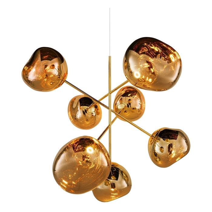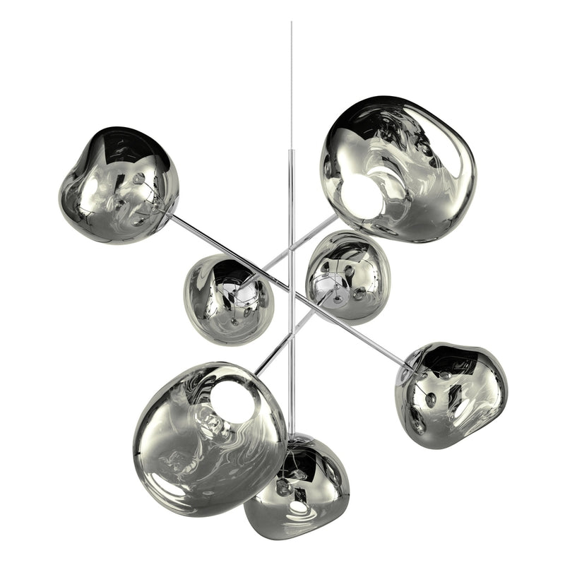 A swarm, huddle, herd, cluster or bunch; there are a thousand ways of configuring our lamps to produce an extraordinary lighting arrangement. The latest additions to the Melt family include the Melt Large Chandelier, a configuration of seven organic and imperfect orbs which explode from a central hub to create a dynamic lighting sculpture of infinite reflections. Fitted with our new LED module, our Melt Chandeliers are our attempt to rethink the contemporary chandelier.