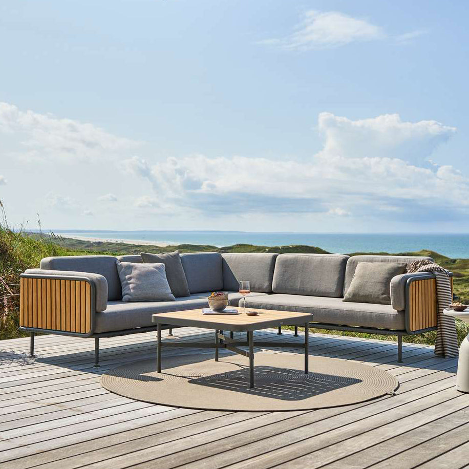 Thomas E. Alken wanted to create a highly comfortable and elegant range of lounge modules, which allow for great freedom in creating one's unique piece of furniture as the center of relaxing outdoor moments. With the distinct aluminum frame and teak lamellas, it creates a room of its own, where every angle thrills the eye or invites you to enjoy the comfort of every moment.