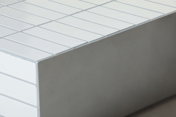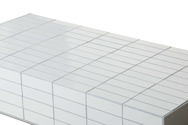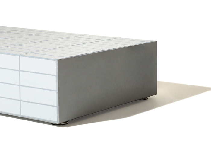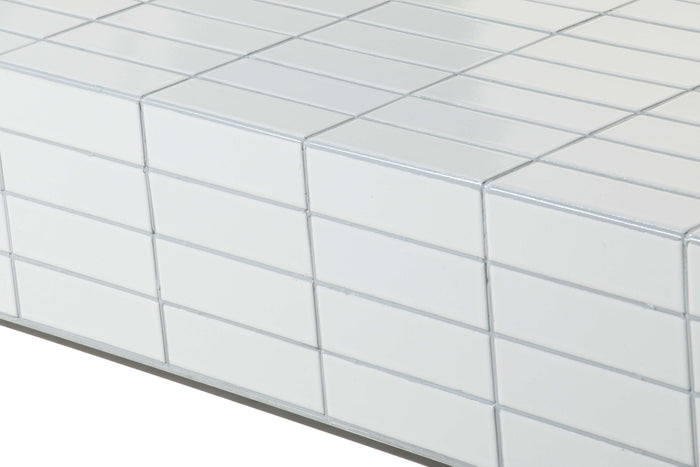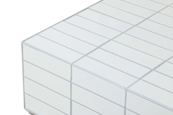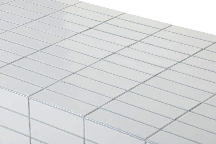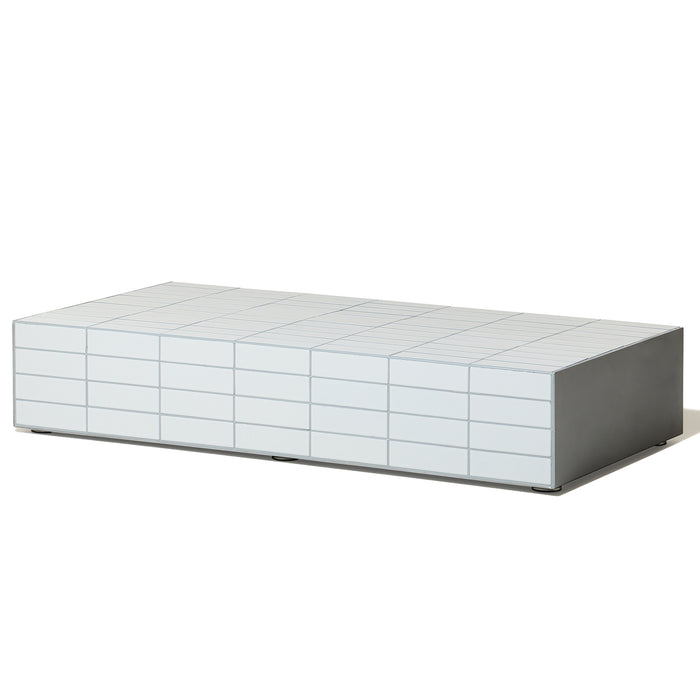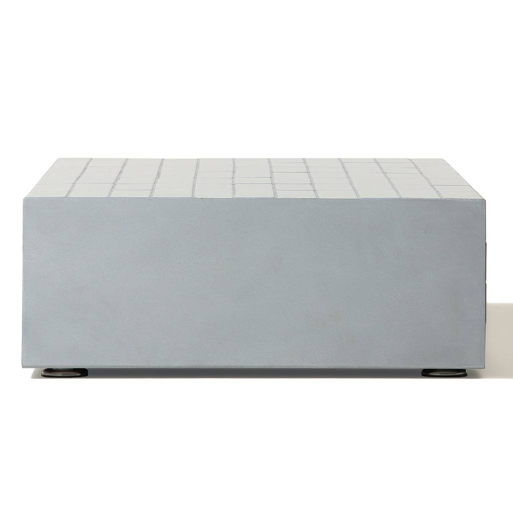The Moro Coffee Table features a sturdy aluminum side plate and a taupe matte tile grouting, providing both durability and a stylish, modern touch. Elevate any living space with this functional and sleek side table.