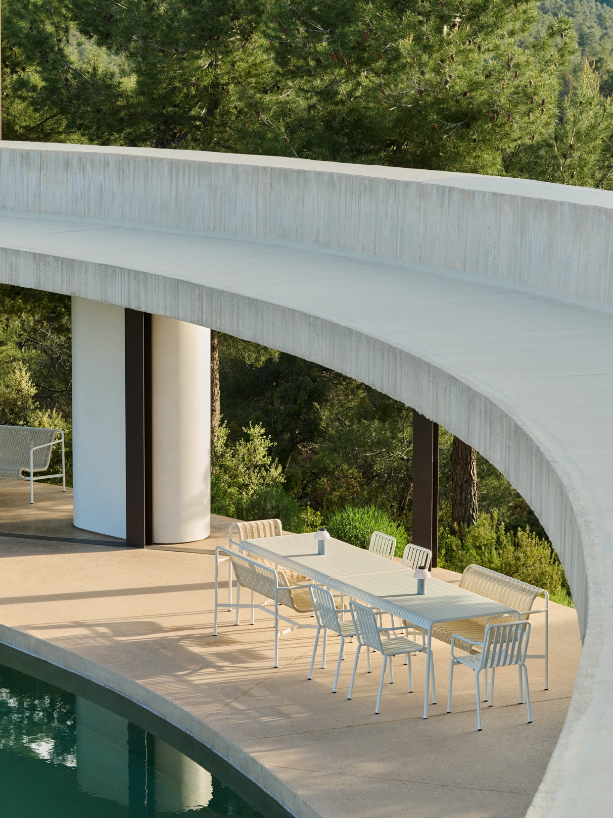 The Palissade Cord Collection brings a new expression to Ronan and Erwan Bouroullec’s iconic Palissade outdoor furniture range. Retaining the same design language as the original Palissade, recycled polyester cord is handwoven onto the steel frame, adding a softer, more relaxed expression.