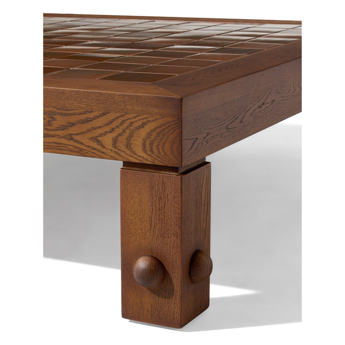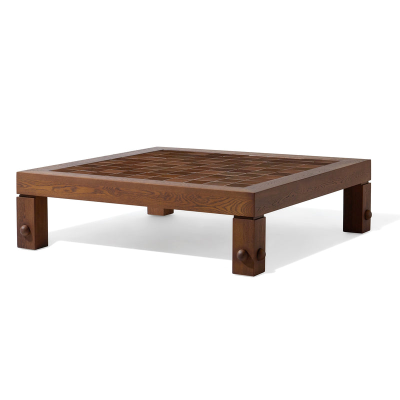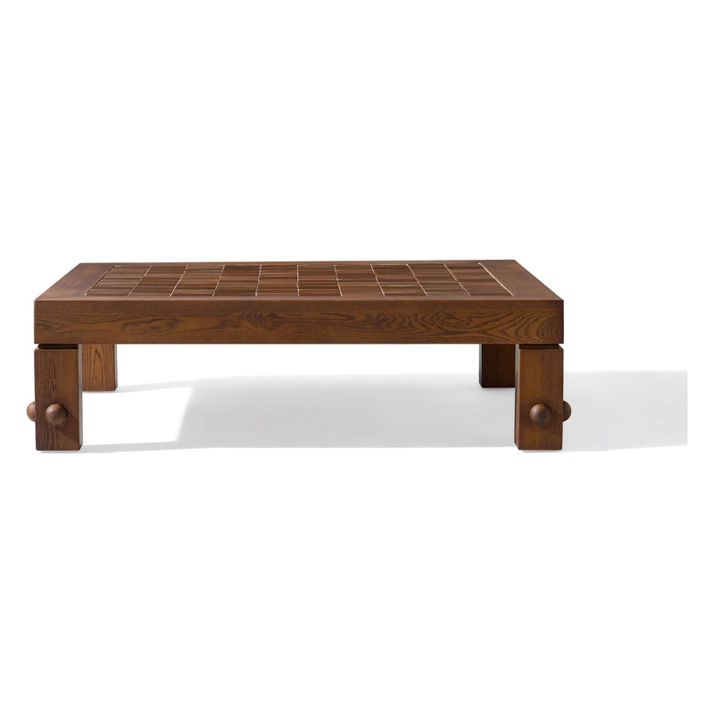 The Palm Drive Coffee Table is a substantial furniture piece that emphasizes geometric precision and the natural warmth of wood. Designed with a bold, monolithic silhouette, this table serves as a central focal point for sophisticated lounging environments.
