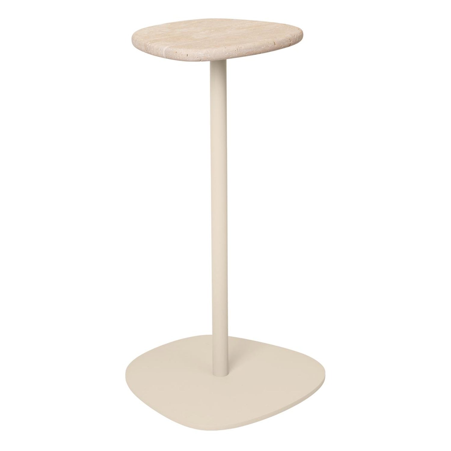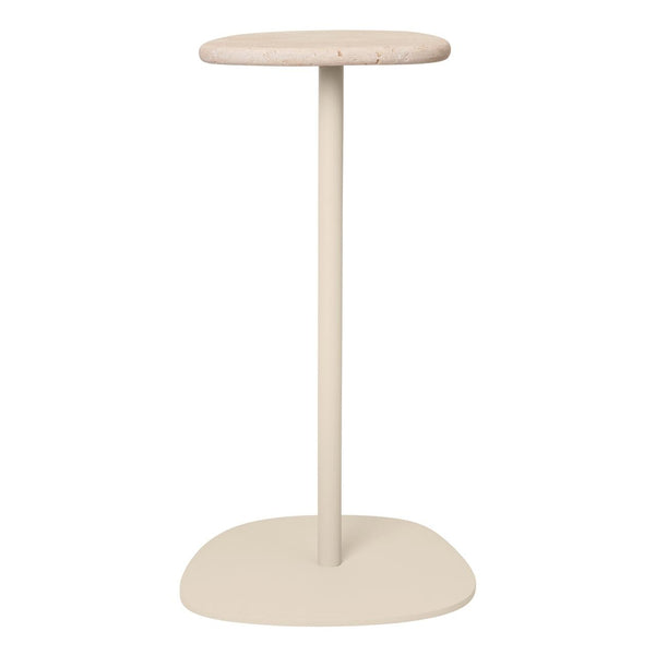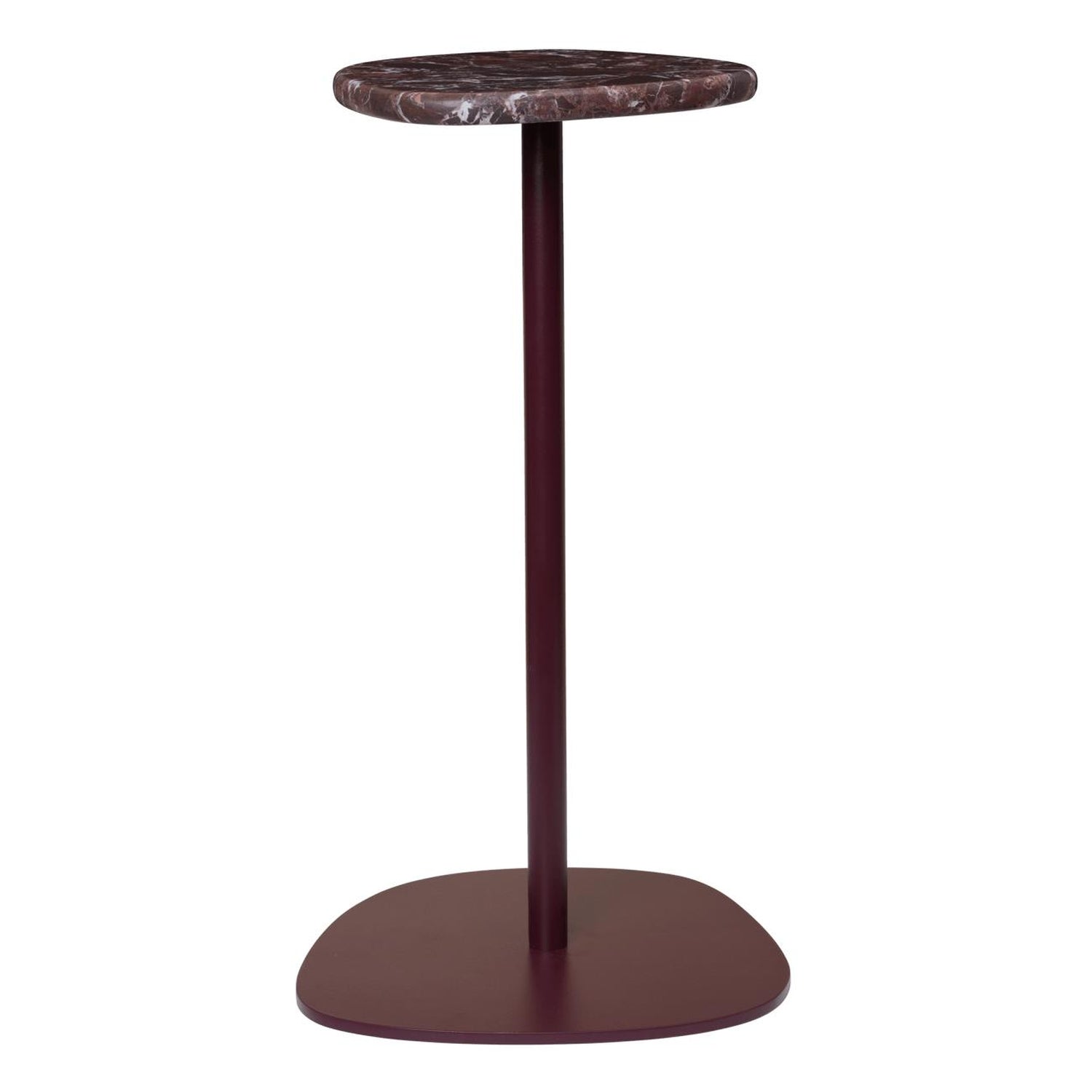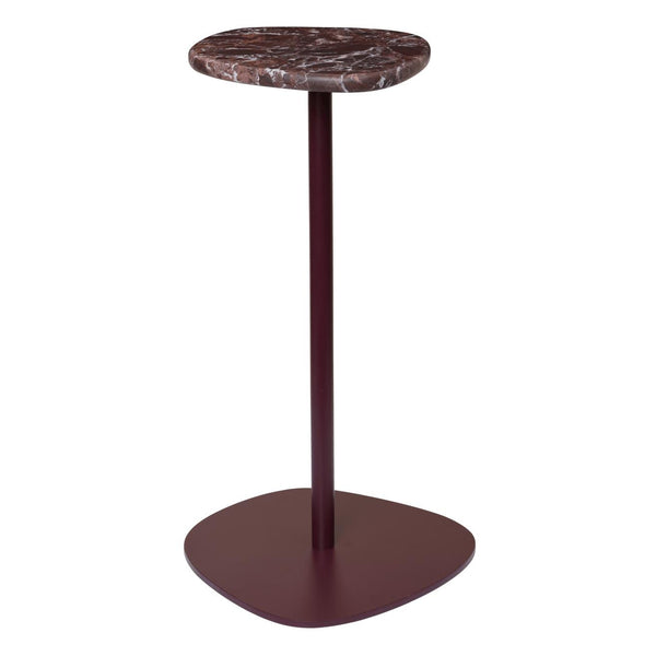 Plyo is a family of furniture inspired by smooth river stones, conveying balance and a sense of calm. The Plyo Accent Table takes its cues from French guéridon tables, celebrated for their elegant proportions and intimate scale. Featuring a slender pedestal base topped with an organic stone surface, it is crafted from electro-galvanised, powder-coated steel and Rosso Levanto marble. The Plyo Accent Table works beautifully as a drinks table, sofa-side accent, bedside perch, or sculptural standalone piece - suitable for both indoor and outdoor use.