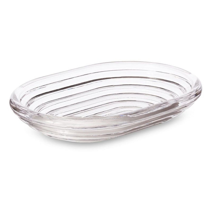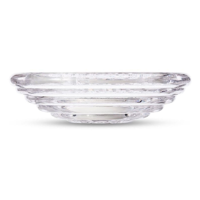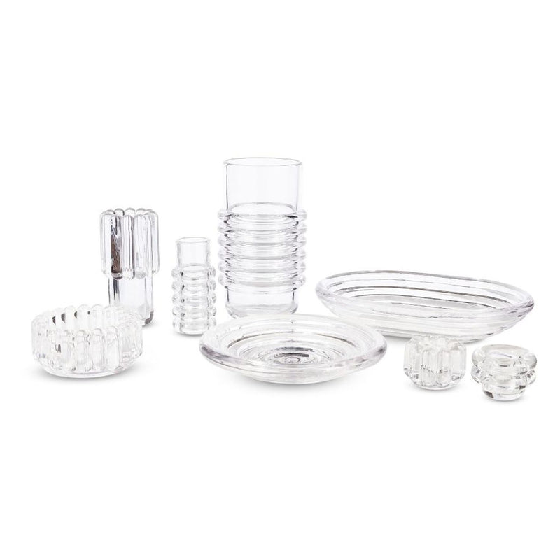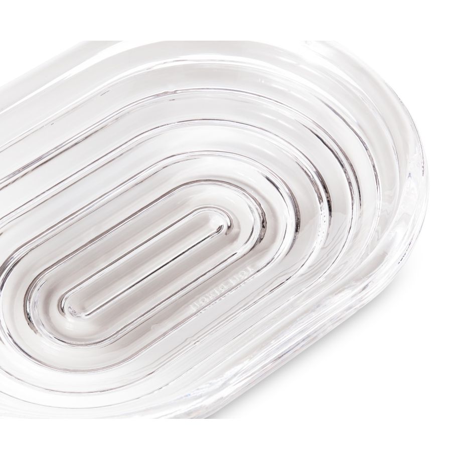 Press is a large bowl designed and engineered to catch and refract light, and to last for ever. This heavyweight grooved bowl is made of fat, chunky coils of pure and clear transparent glass. Bold in silhouette and simple in function, it is manufactured by dropping big globs of molten glass at 1,200 degrees centigrade and pressed in two or three part iron moulds to create the immediately familiar silhouette.