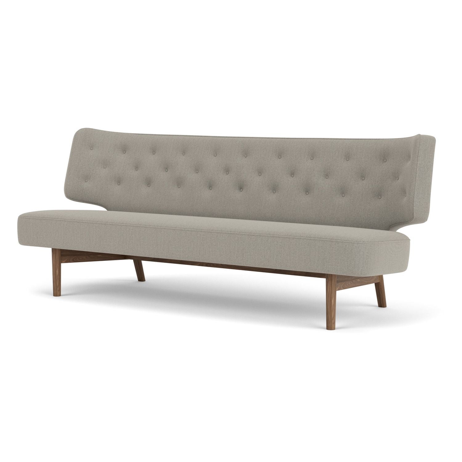 An exclusive and rare design from Vilhelm Lauritzen, the Radiohus Sofa was designed for Denmark’s Radio House – today the Royal Danish Academy of Music – in 1936. A pioneering piece of Nordic Functionalism, the elegant design shunned the conservative and straight lines of the time in favour of a more futuristic expression. Beautiful from all angles, its curved lines and open construction welcome and embrace the sitter, while the quilted back highlights the exactness of its design. A piece of furniture that requires space, let it stand freely in a room.