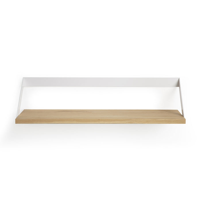 The Oak ribbon shelf by Studio Kaschkasch impresses through its simplicity. It’s a free and easy shelf combining beautiful oak wood and a metal hanging system. Whether you hang only 1 or a dozen, this functional shelf is compatible in so many different interiors due to its accessible look.