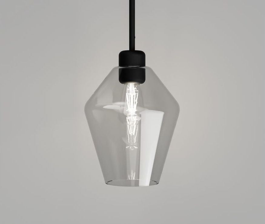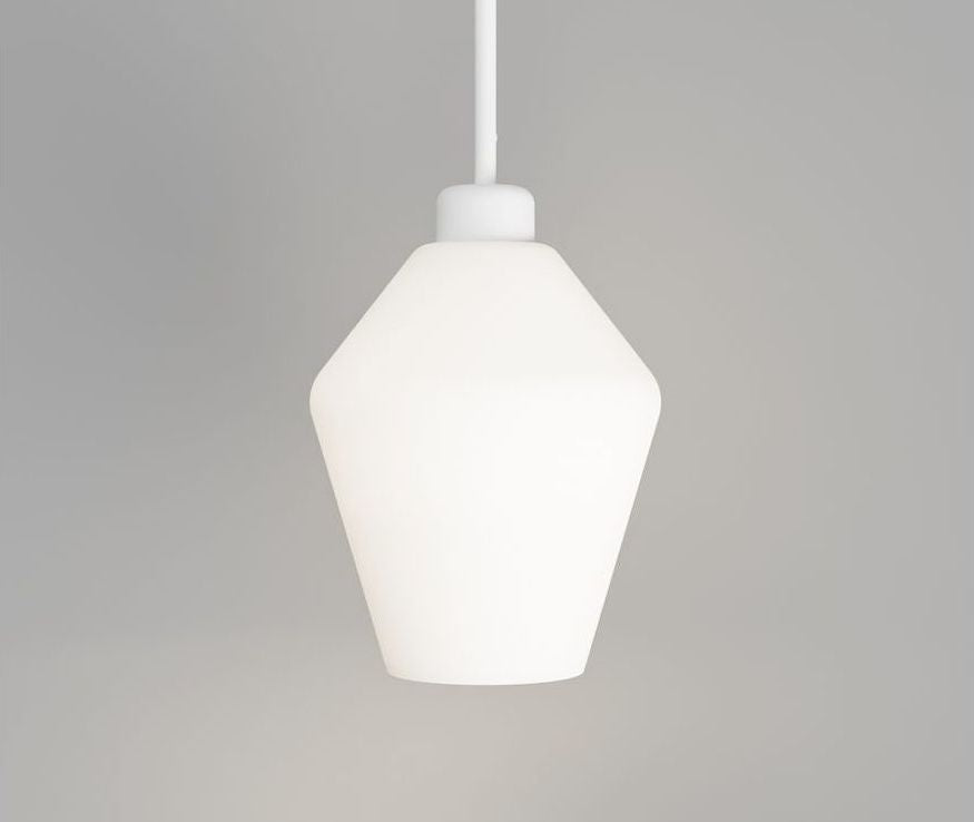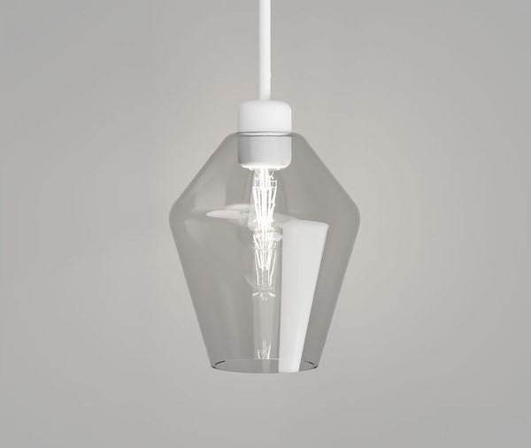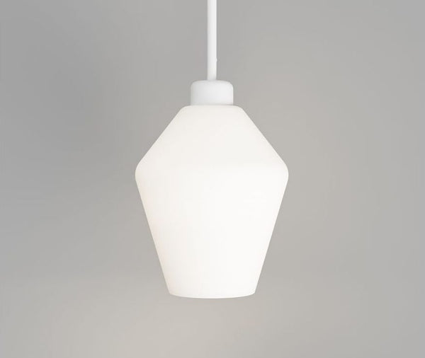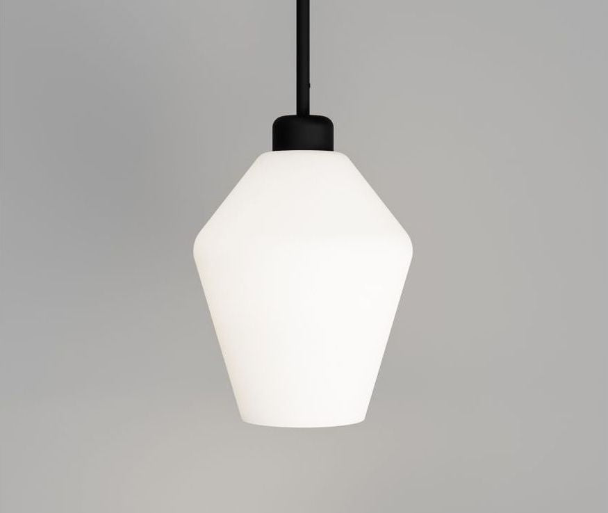 Salon Lite Geo Pendant Light is a hybrid of the Lite suspension with the Geo glass shade. The compact suspension is sleek and contemporary while the shade features a geometric shape that has been streamlined by its smooth curves to counteract its angularity.
