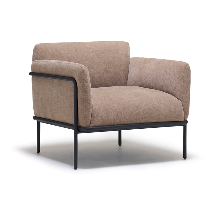 A Bauhaus-inspired sleek external metal frame gives a clean, bold impression to this sharp design. The soft curves of the cushions contrast nicely with the strong straight lines of the metal frame striking the right balance between refined industrial and contemporary domestic. Scribe’s tight and tidy appearance, with seating comfort slightly firm but not hard, is equally suited for either commercial or residential spaces.