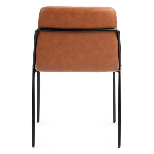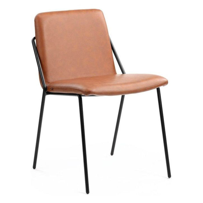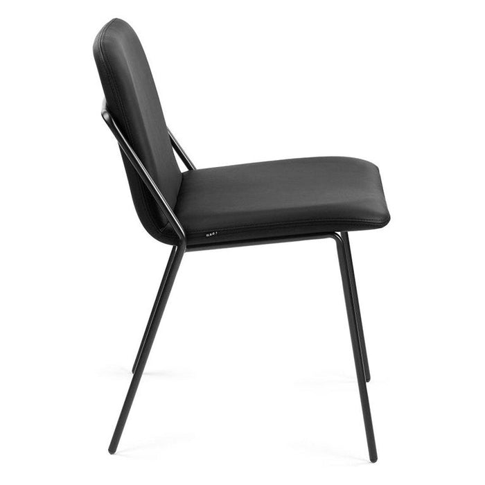 The Sling chair features an ergonomic and refined design that has a comfy leather seat nestled into a powder-coated frame. It's versatile and functional in design that shines through its minimal appearance and is also stackable to make the most out of your space.