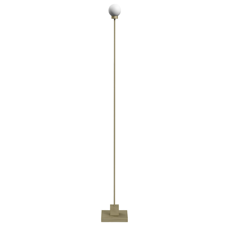 Designed for indoor and outdoor environments, this floor lamp blends the series’ timeless silhouette with updated finishes in brass and grey-beige.