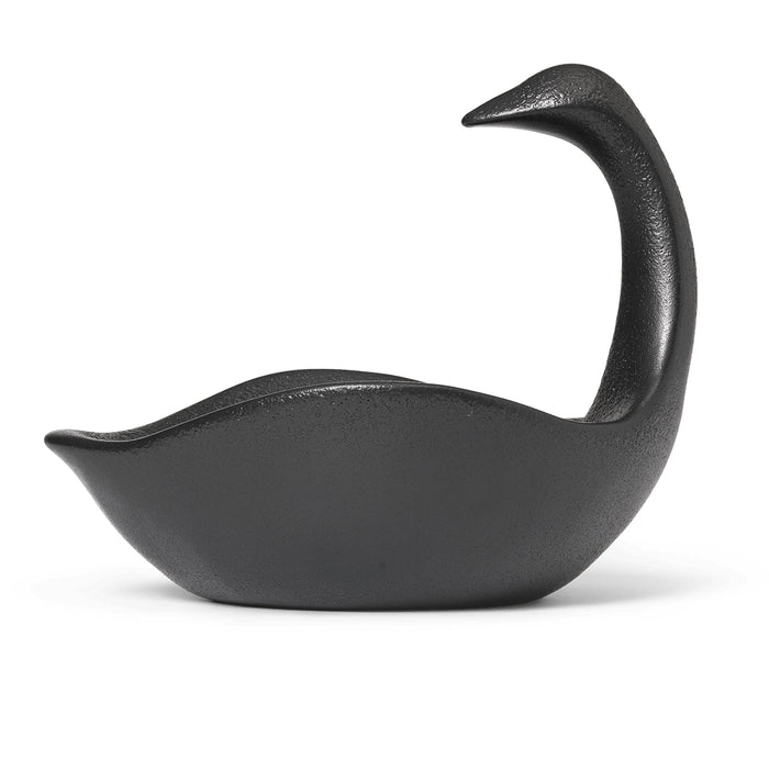 Inspired by vintage references, the Swan Centrepiece embodies timeless elegance and romantic charm, evoking a sense of nostalgia and sophistication. This exquisite piece serves as a decorative element while also offering practical functionality. Its spacious body and elongated neck provide ample space, creating a visually striking display that doubles as a functional serving dish. Crafted from black glazed ceramic, this centrepiece is food-safe, making it a perfect addition to any table setting.