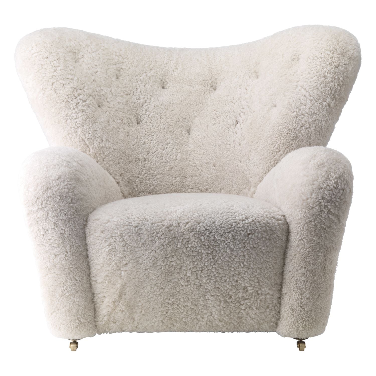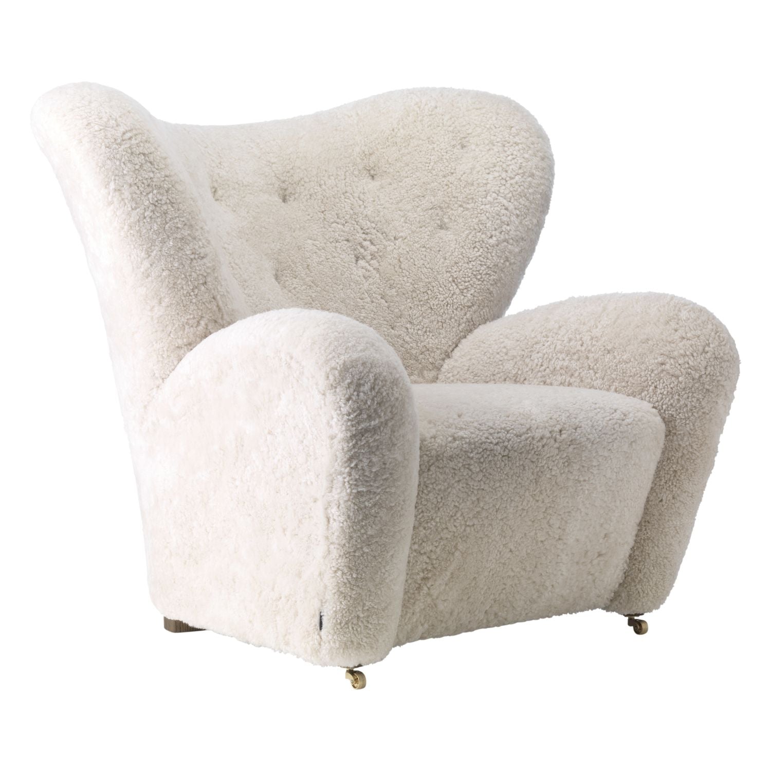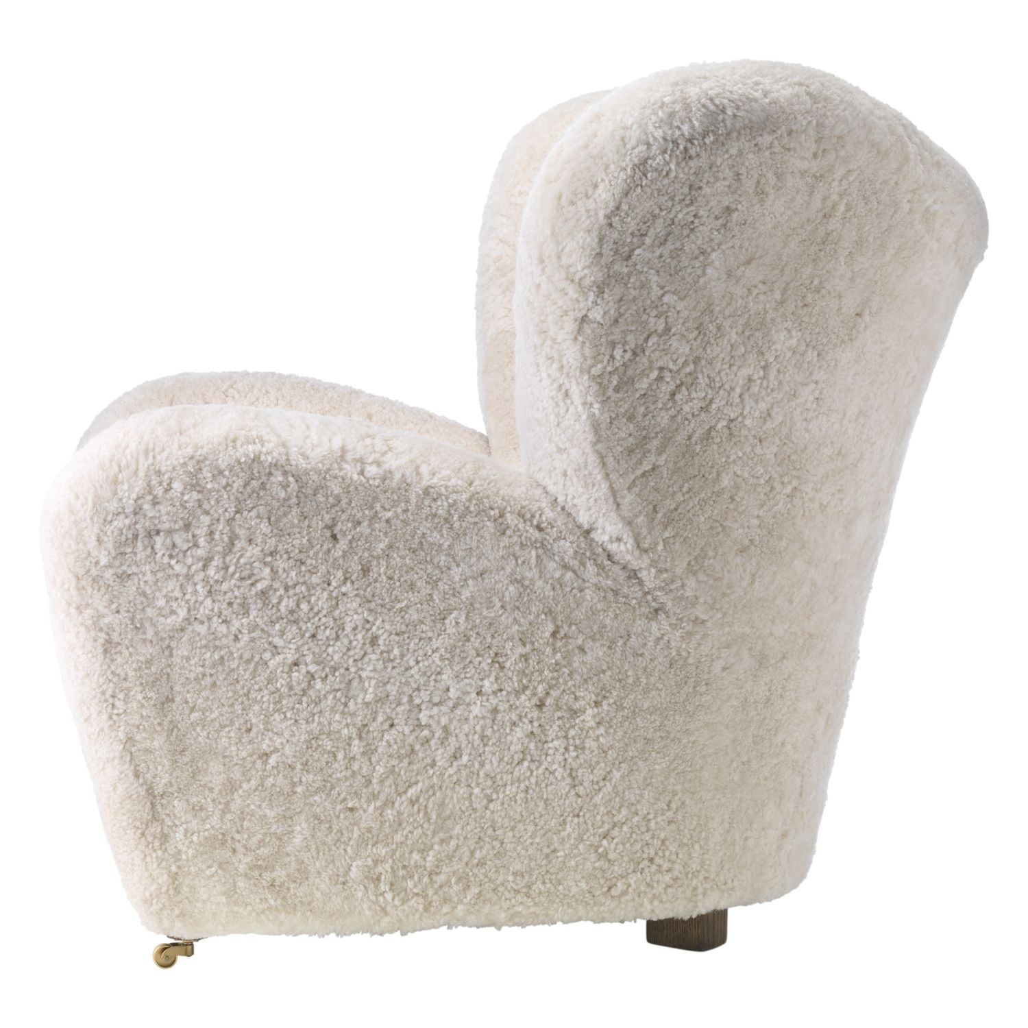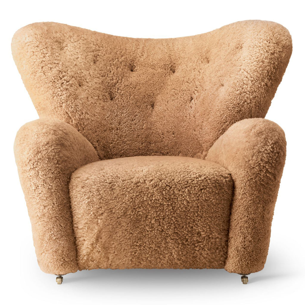 The Tired Man was launched at the Copenhagen Cabinetmakers’ Guild Exhibition in 1935 and has since become an icon of Danish design. The epitome of craftsmanship and comfort, the characteristically curved armchair was designed by Flemming Lassen to feel “as warm and snug as a polar bear cub in the arms of its mother.” Relaunched in 2015, the award-winning design is offered in plush upholstery, including sheepskin in a nod to the original, and with natural or dark-oiled oak heartwood legs and front brass casters for easy movement. A corresponding footstool ensures further comfort.