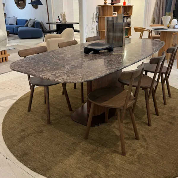 Tilba is a sleek and practical pedestal table with a curved top and a split wooden leg design. Offering flexibility in smaller spaces, the blade like pedestal allows a variety of unimpeded seating configurations. The stone or ceramic top is reflected in the steel base finished in a complementing premium powder coat, offering continuity of the design language. Offering flexibility in smaller spaces, the blade like pedestal allows a variety of unimpeded seating configurations.
