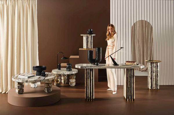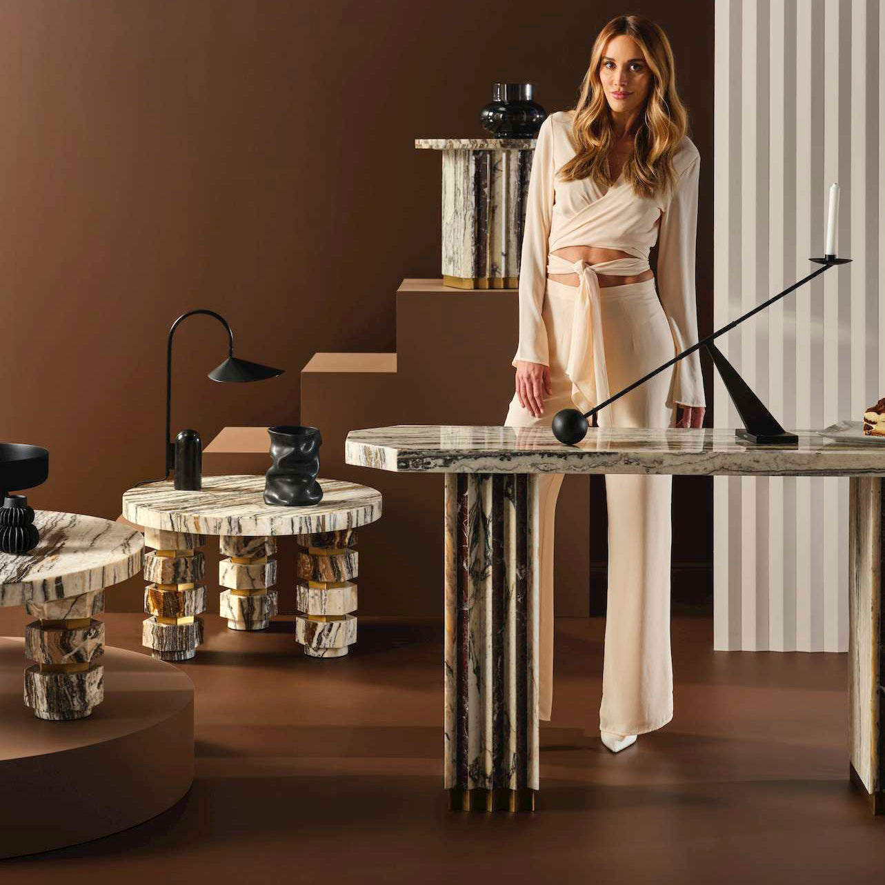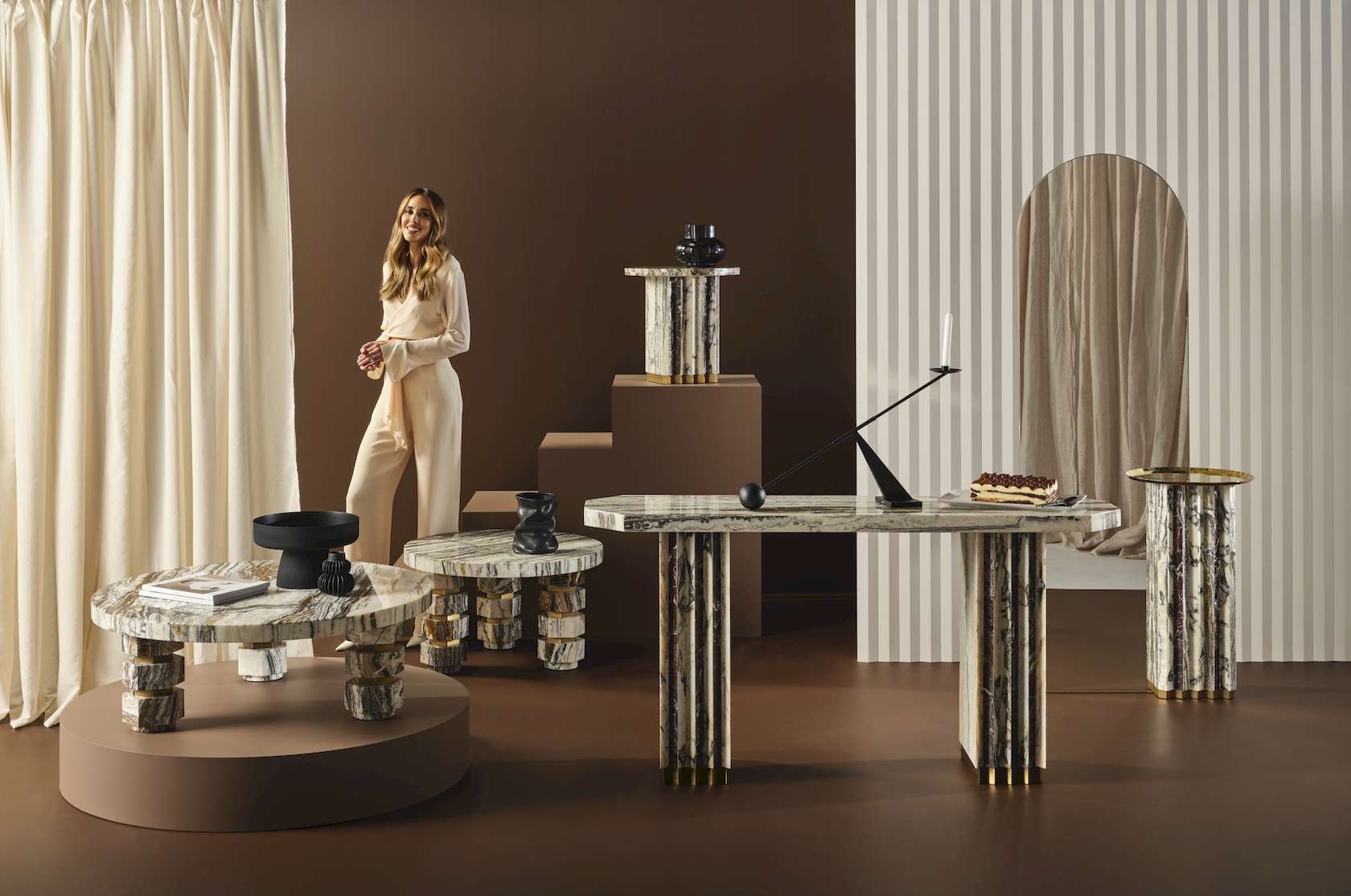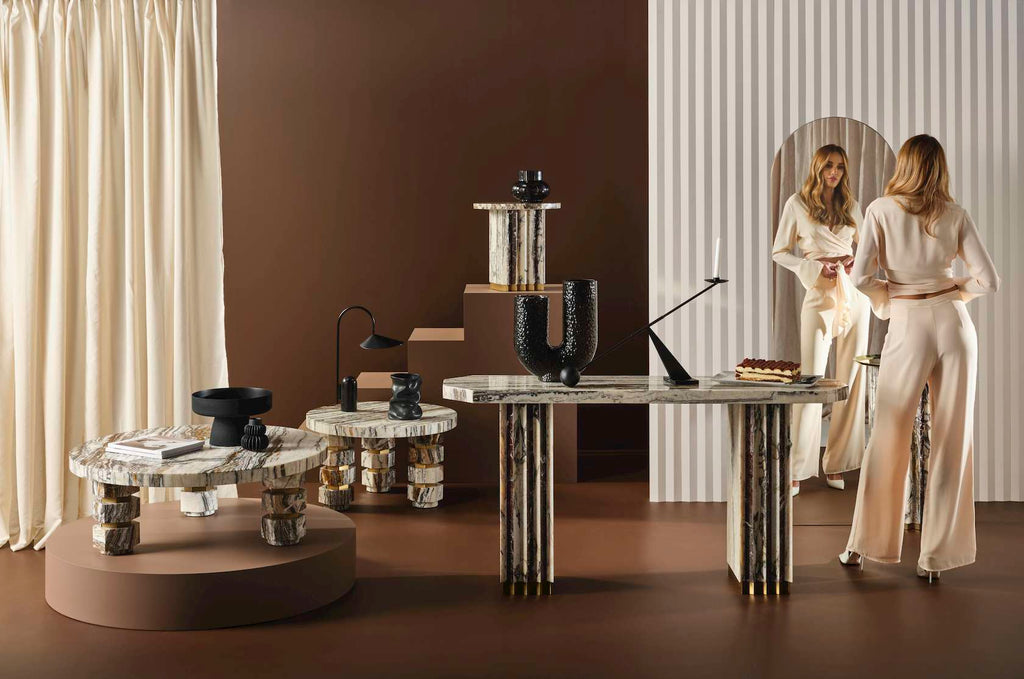 Discover the captivating allure of the Bec Judd Collection. Crafted with meticulous precision, each piece is cut from Tiramisu Marble and polished. This curated ensemble, consisting of a side table, console table, coffee tables, and free-standing mirror would be stunning additions to a home searching for elegance. The namesake of these pieces is inspired by the rich tones of the heavenly desert along with its veins and unique patterns. The Bec Judd Collection reflects both the designer's distinctive style and the timeless beauty of the marble. This exceptional collection encapsulates its sophistication and artistry in each sharp undulation.