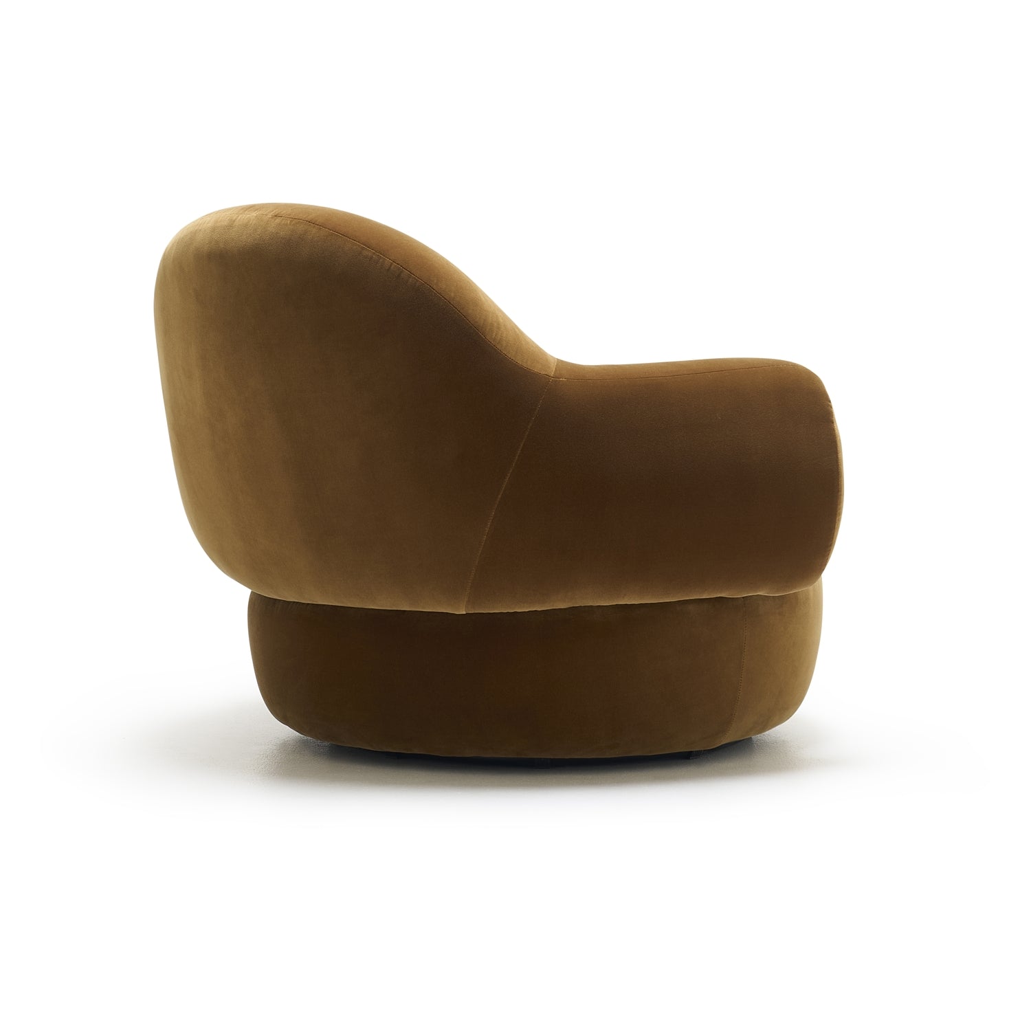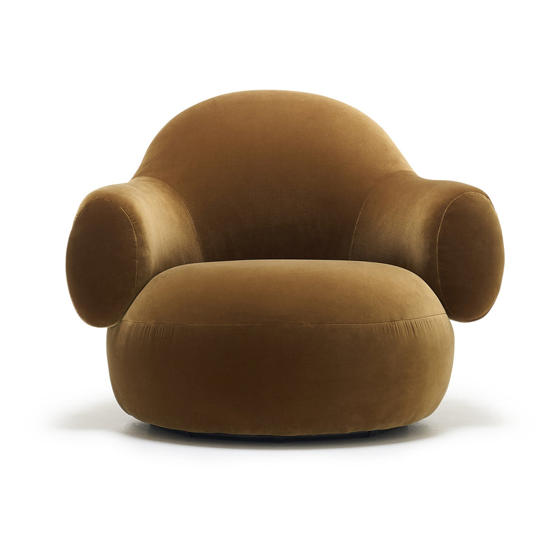 Toad is a statement armchair with welcoming and gentle contours that evoke a mid- century-modernist aesthetic. It pairs perfectly with its three-seater sofa counterpart, yet also complements any other seating option flawlessly. It elevates its surroundings, infusing them with a discreetly aristocratic flair, resonating with a blend of minimalism and refinement.
