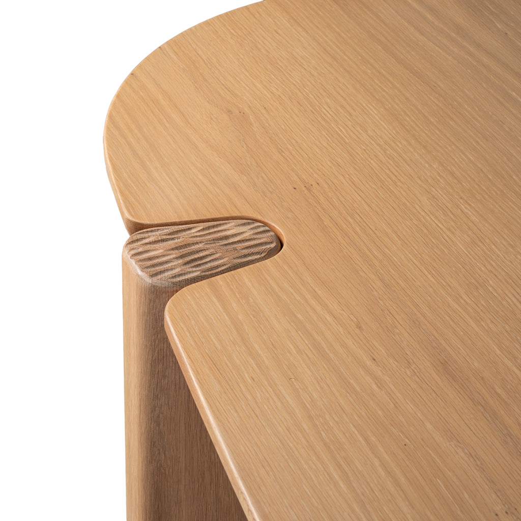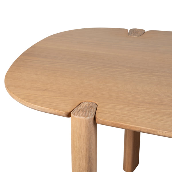 The Tovi Dining Table balances softness and strength, with its oval top and rounded legs forming a grounded yet inviting silhouette. Crafted from solid timber, it highlights the warmth and texture of natural grain, revealing the quiet craftsmanship in every curve and joint. A timeless piece that anchors everyday gatherings with ease and quiet elegance.