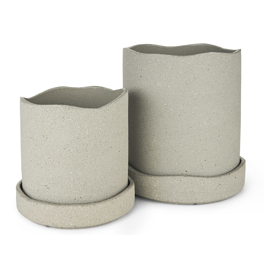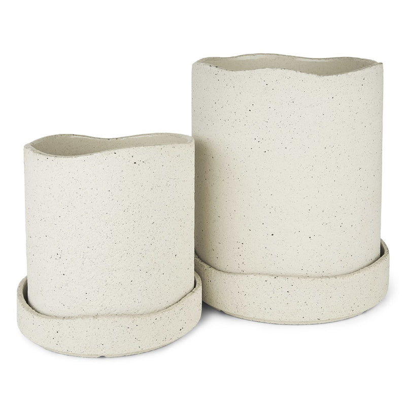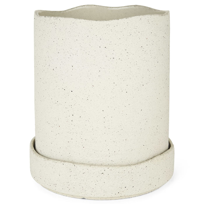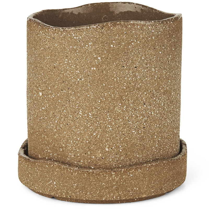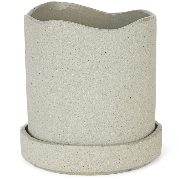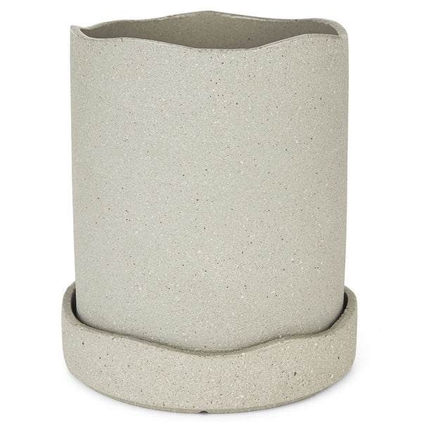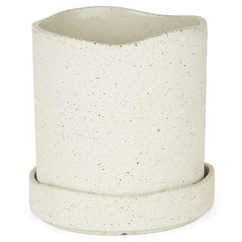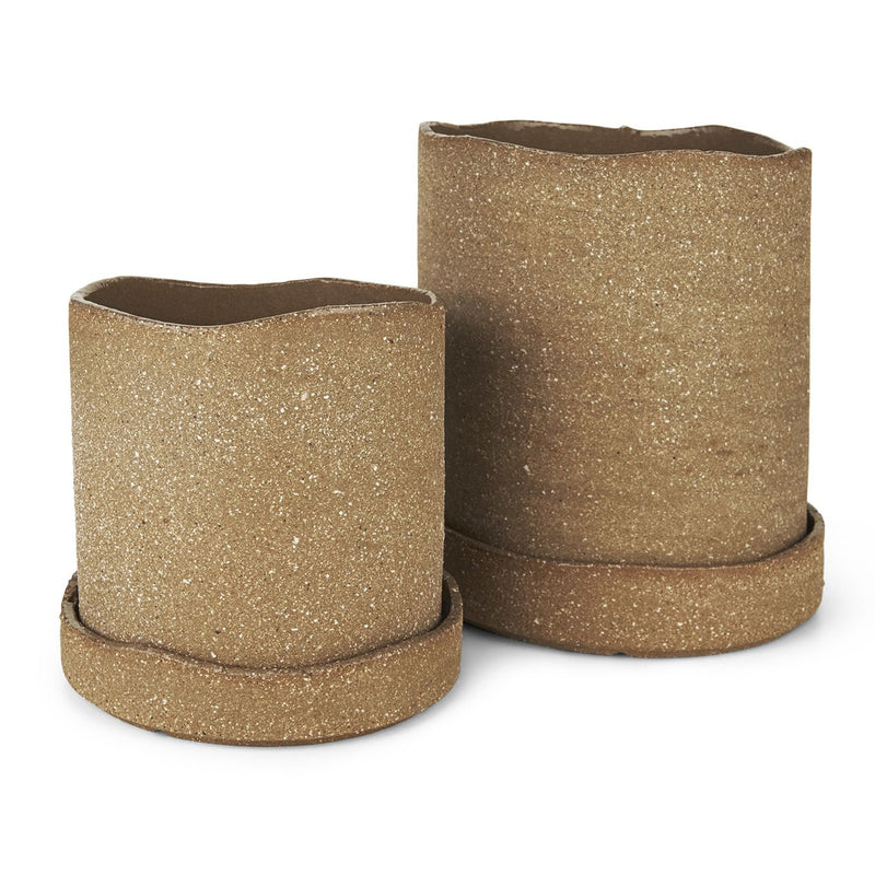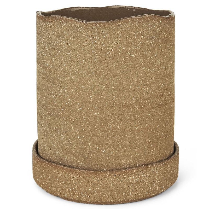 Featuring an unglazed, rough outer surface and an artfully uneven edge, the Uneru Pot and matching saucer will provide any space with a warm, tactile expression. Made from 30-40% recycled clay, the inside of the pot has been glazed, making it the ideal home for your favourite plants.