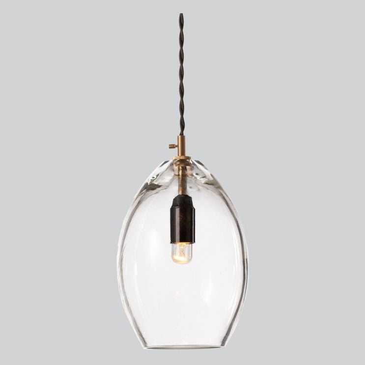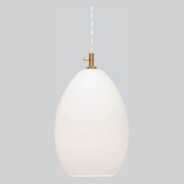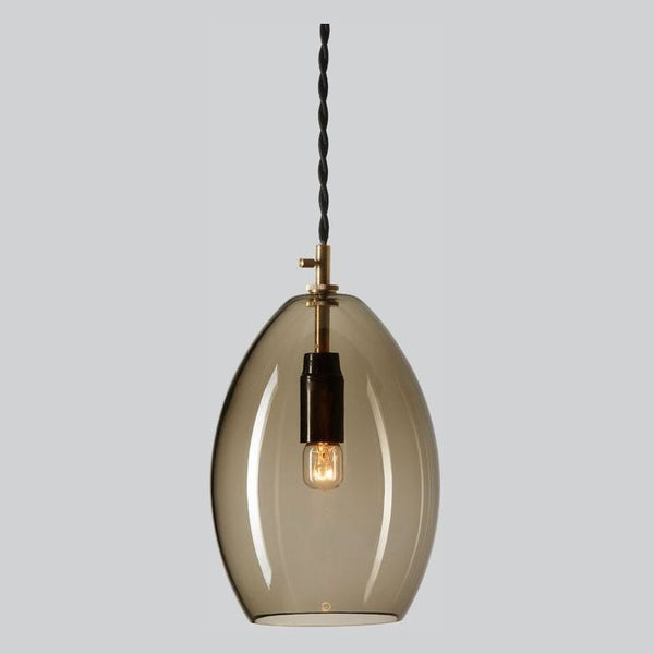 Unika Pendant Light Collection by Northern is a mouth-blown series of small & large, glass pendant light fixtures. This interior pendant light simple base is made of solid brass; a detail that gives the lamp a clean, industrial look, making a sharp contrast to the fragile, handmade glass lamp shade and hangs from a twisted fabric wire.