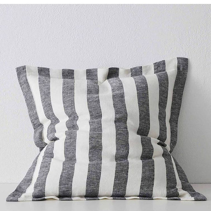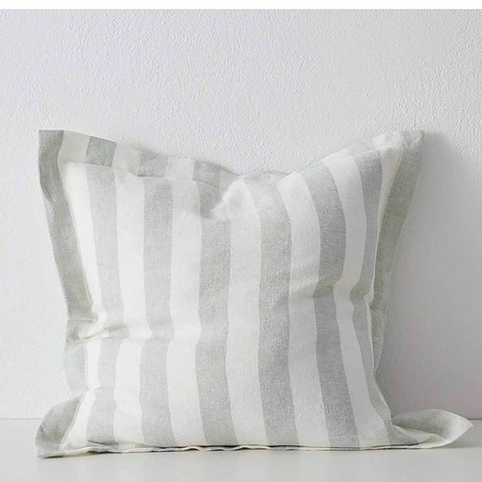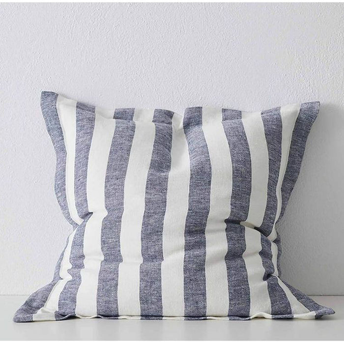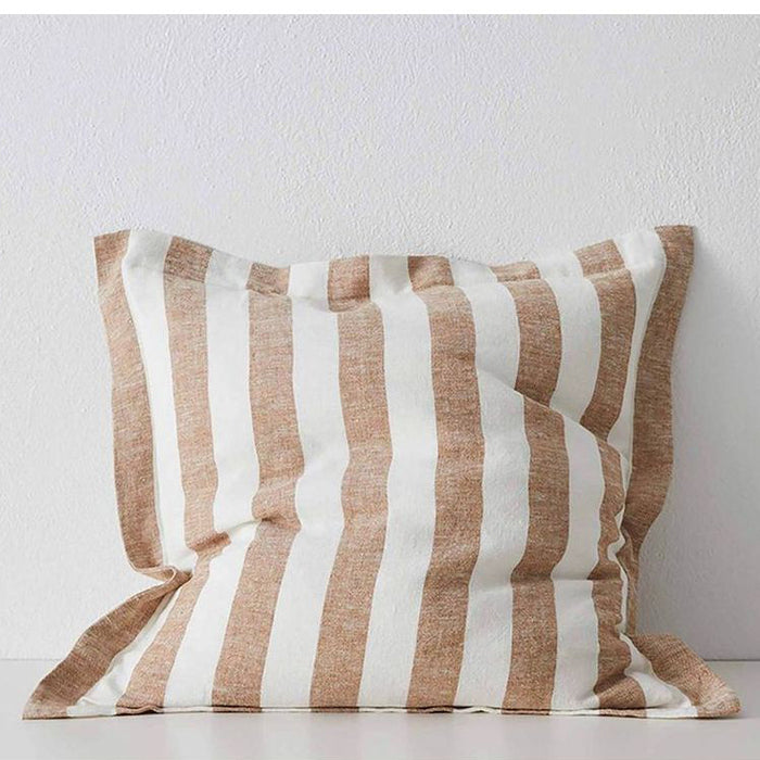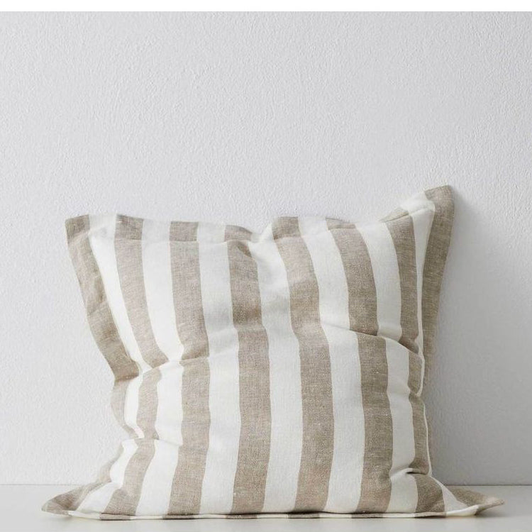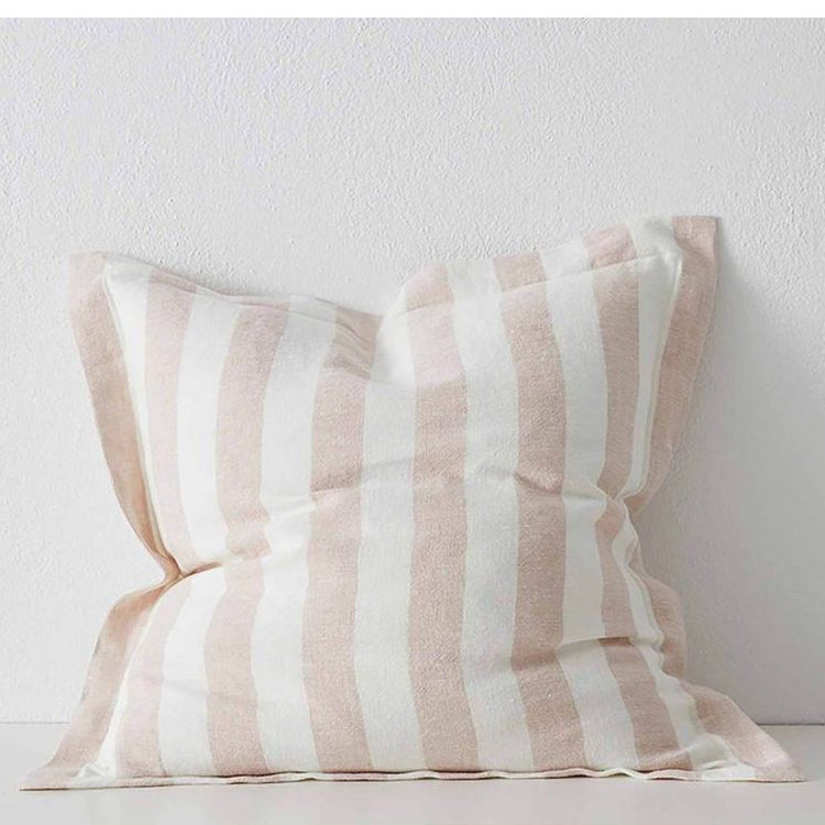 Our Vito cushion is crafted from 100% linen, sourced from Italy and France. The four centimeter yarn dye stripe and stone-wash finish create a relaxed, super soft, coastal look and feel. Our Blush colour is a soft, dusty pink and will look great in your bedroom or on your couch. Style Vito solo or with our lario range — Vito is lario's coordinating, stripey sibling. Luca measures 50cm x 50cm and features flange edge detailing. A YKK zip is concealed on the reverse. All cushions are supplied with a premium, vegan-friendly microblend inner. An optional duck feather upgrade is also available. We recommend gentle cold machine wash. Wash with like colours and lie flat to dry. Do not tumble dry. Cool iron on reverse. Dry cleanable.