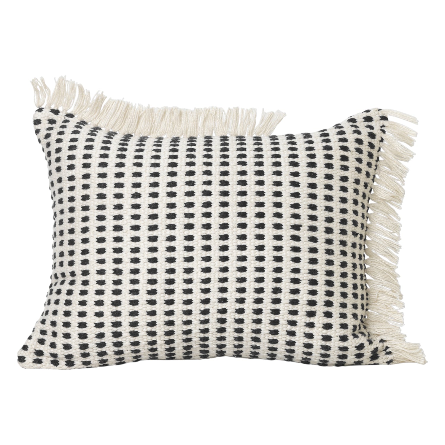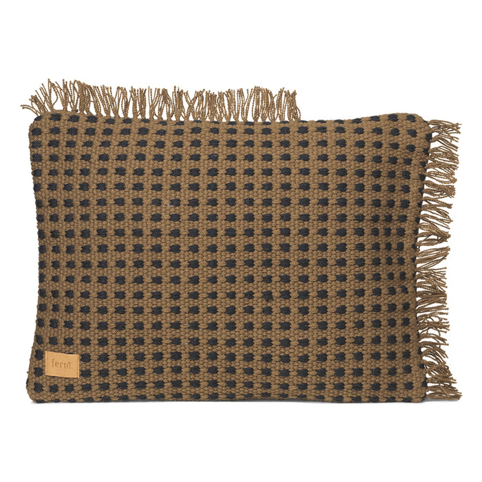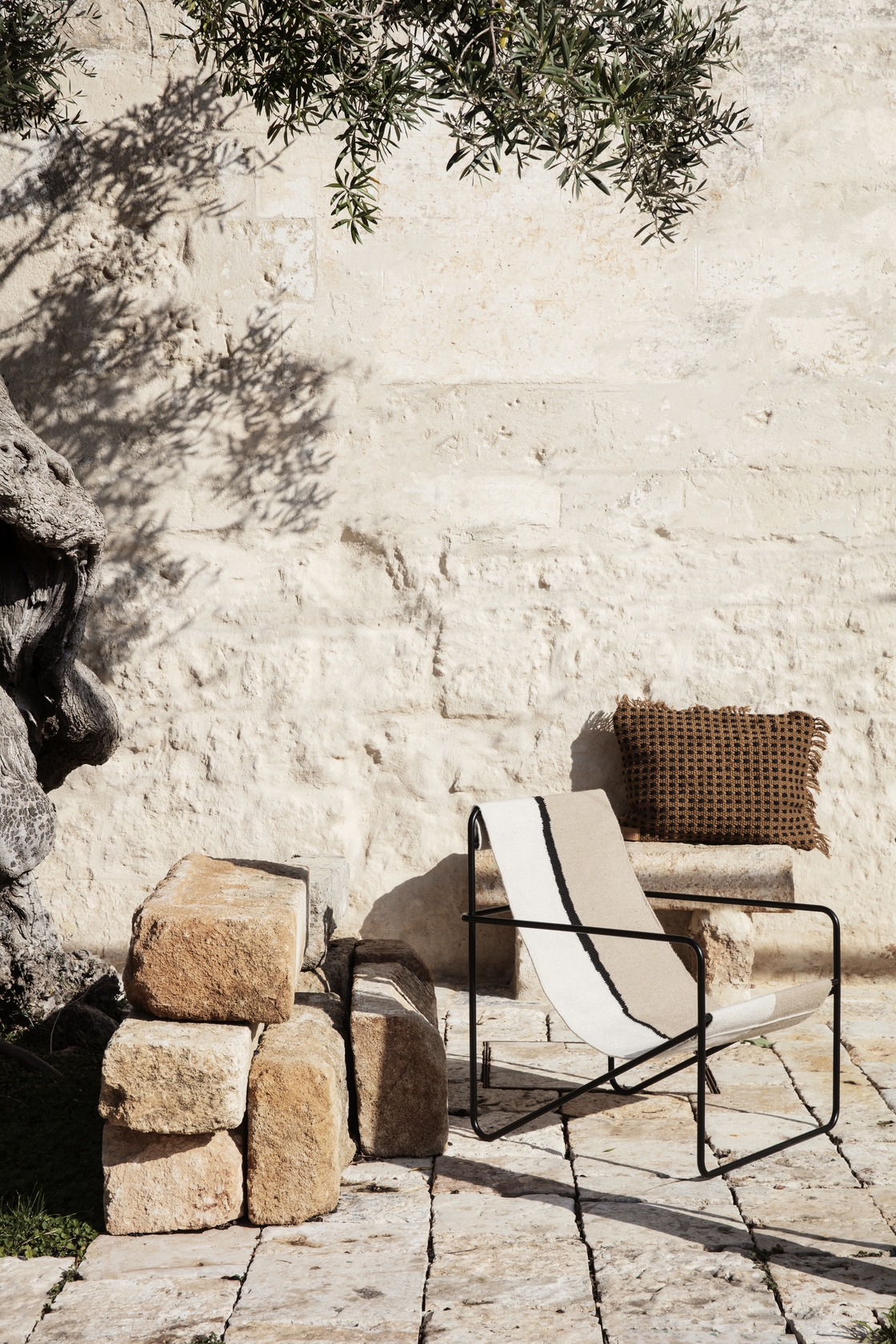 By upcycling post-consumer plastic into recycled PET yarn, the Way series presents an incredibly durable line of sustainable designs that can be used both indoors and outdoors. With its timeless checkered pattern, asymmetrical fringes and a lovely, tactile texture, this large cushion achieves a classic look with a twist.