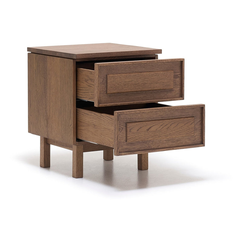 Yorke nightstands exude the calm assurance of symmetry. A crafted panelled motif on the fronts, effortlessly linking the past with the present, is the only decorative detail on an otherwise minimal linear form, well grounded by thoughtful proportions. Fans of the Yorke cabinet series will be delighted to see the expansion into the bedroom with nightstands in two widths.